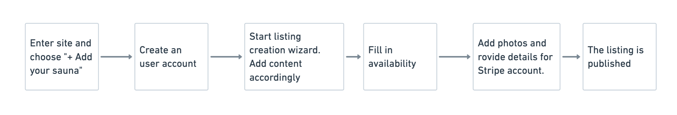 As the development starting point, Saunatime’s user journeys are the default ways in which users create content, discover listings, and transact in Flex. Designing your marketplace’s journeys helps developers understand how to modify the template code to build your custom marketplace. The next article guides you in creating your own user journey.