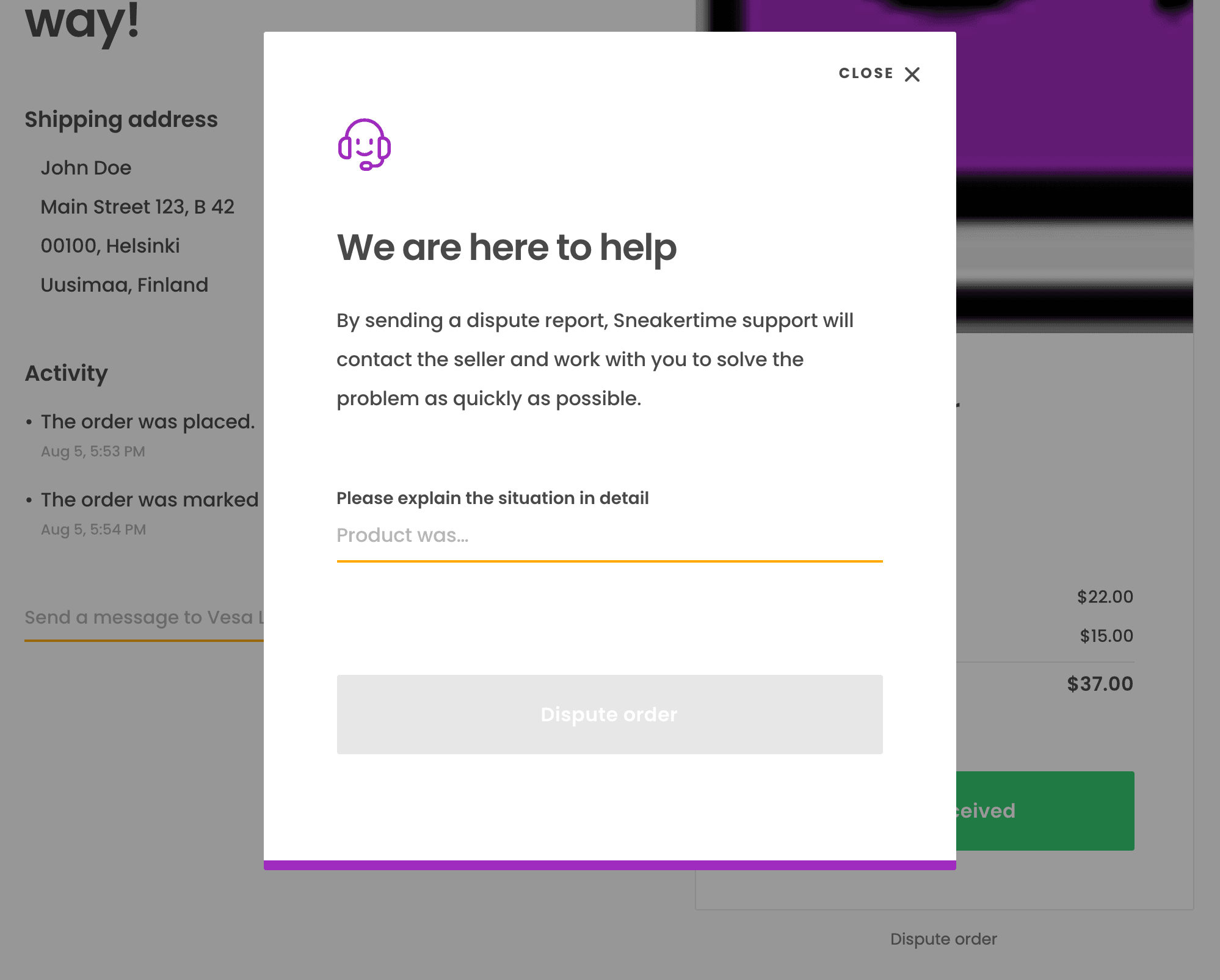 Dispute modal