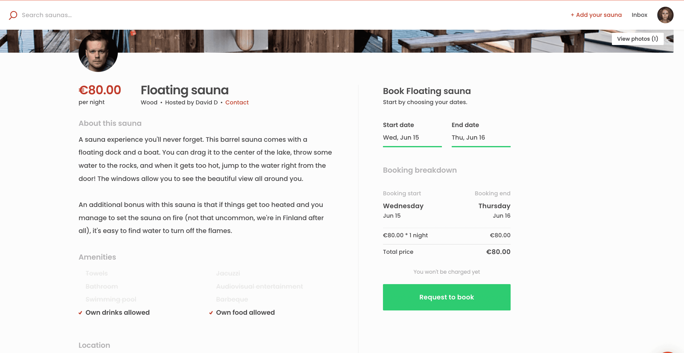 The heart of the Saunatime marketplace are listings. As a registered user, you can create as many listings as you want, and all published listings are visible to both registered and anonymous users.