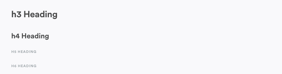 ###### h6 HeadingIt is possible to add h1 and h2 headings to the content via markdown. You simply need to follow a similar format. We recommend avoiding doing it. A page should only have a single h1 header, which can be added directly through the Page editor to the first title in your page. The h2 can then be either the Section or the Block titles.